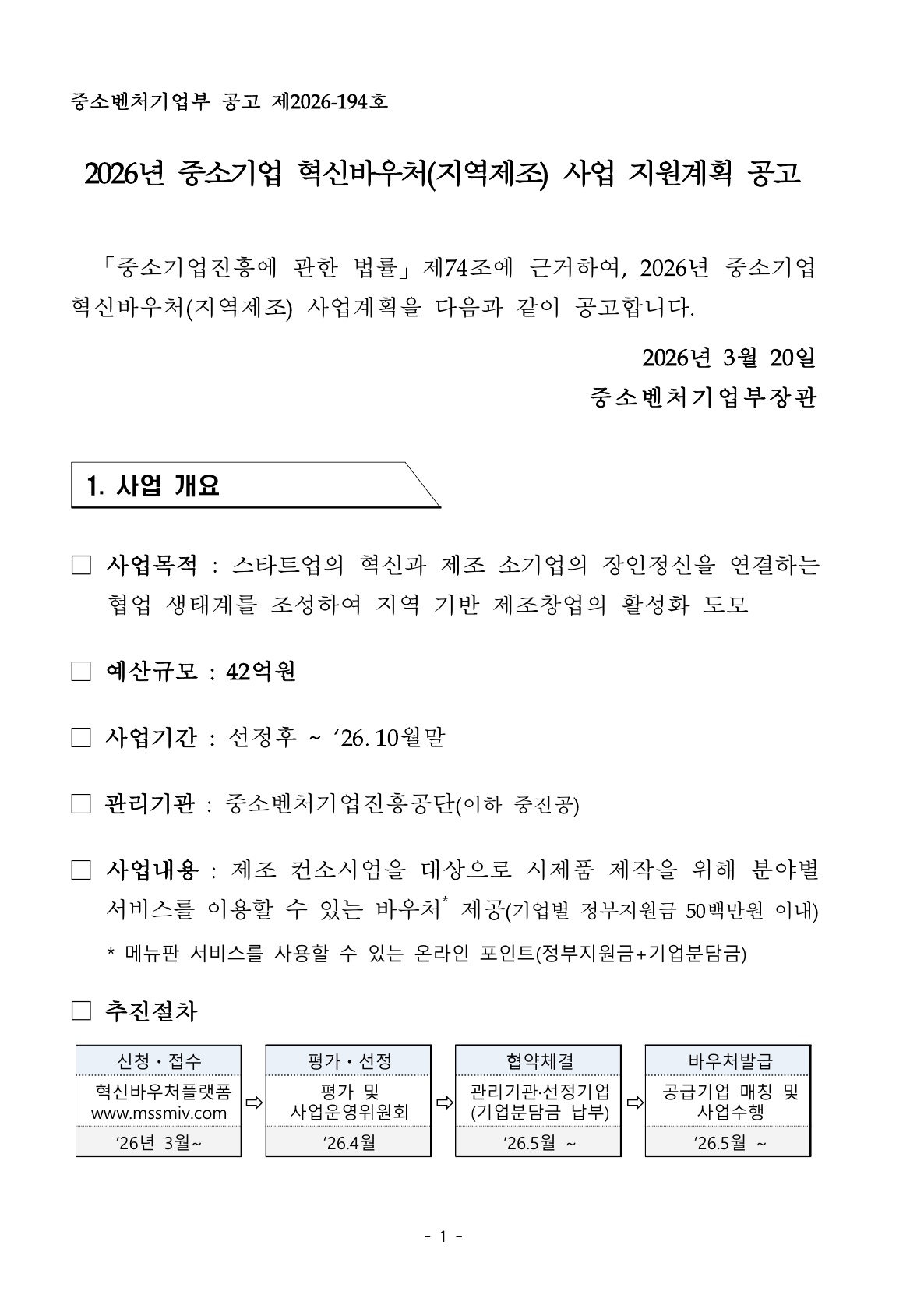 ¡Ú2026³â Áß¼Ò±â¾÷ Çõ½Å¹Ù¿ìó Áö¿ªÁ¦Á¶ »ç¾÷ °ø°í¹®.pdf