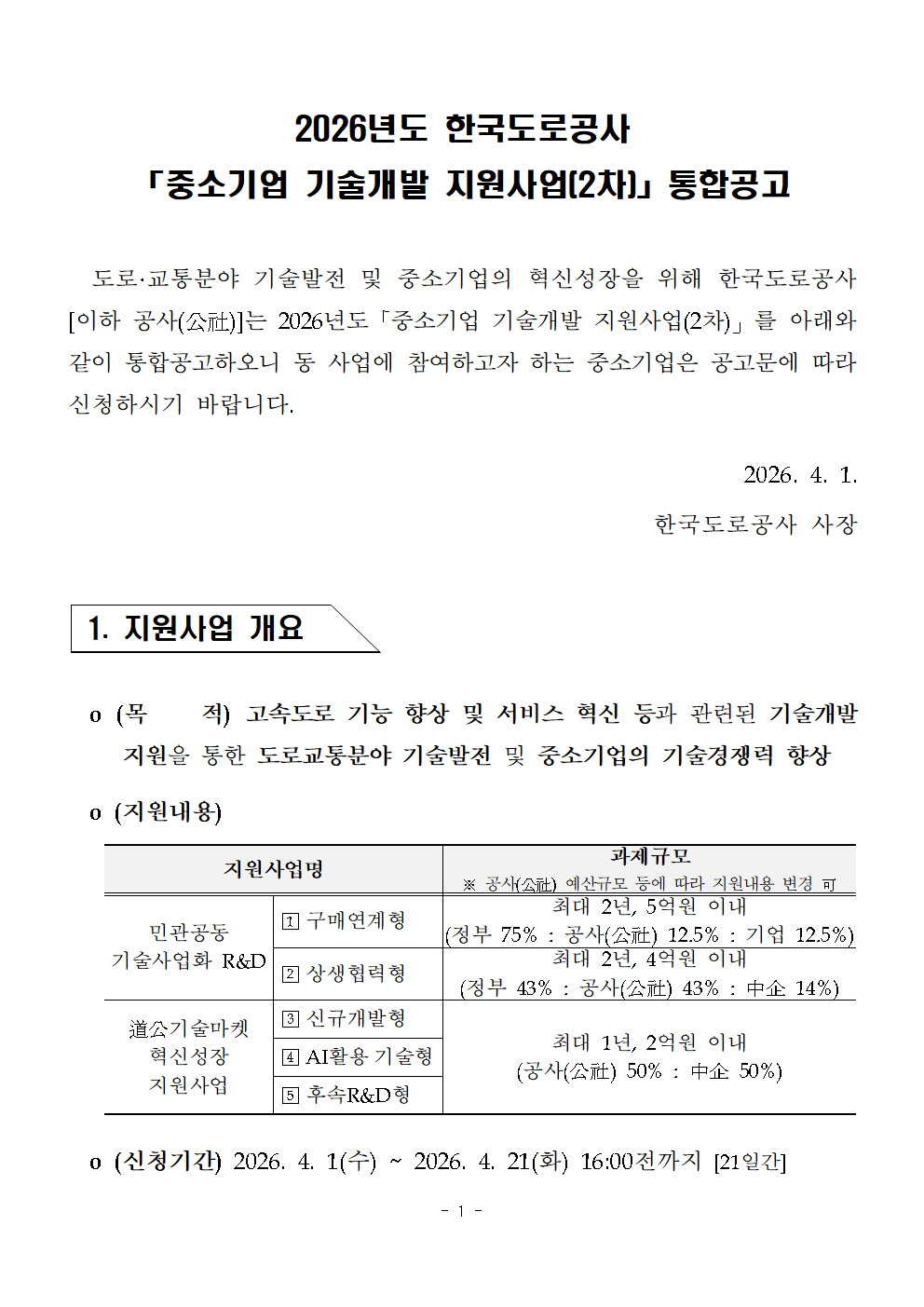 2026³â Áß¼Ò±â¾÷ ±â¼ú°³¹ß Áö¿ø»ç¾÷(2Â÷) ÅëÇÕ°ø°í¹® 1½Ä.zip