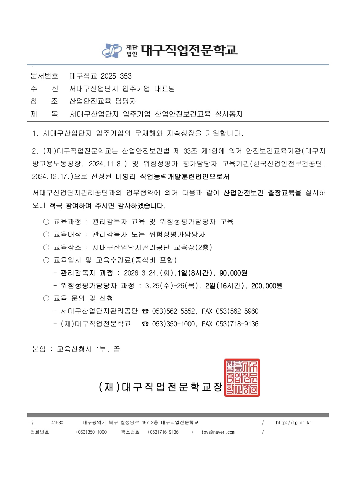 [¼´ë±¸»ê¾÷´ÜÁö ÀÔÁÖ±â¾÷ »ê¾÷¾ÈÀüº¸°Ç±³À° ½Åû ¾È³»]
