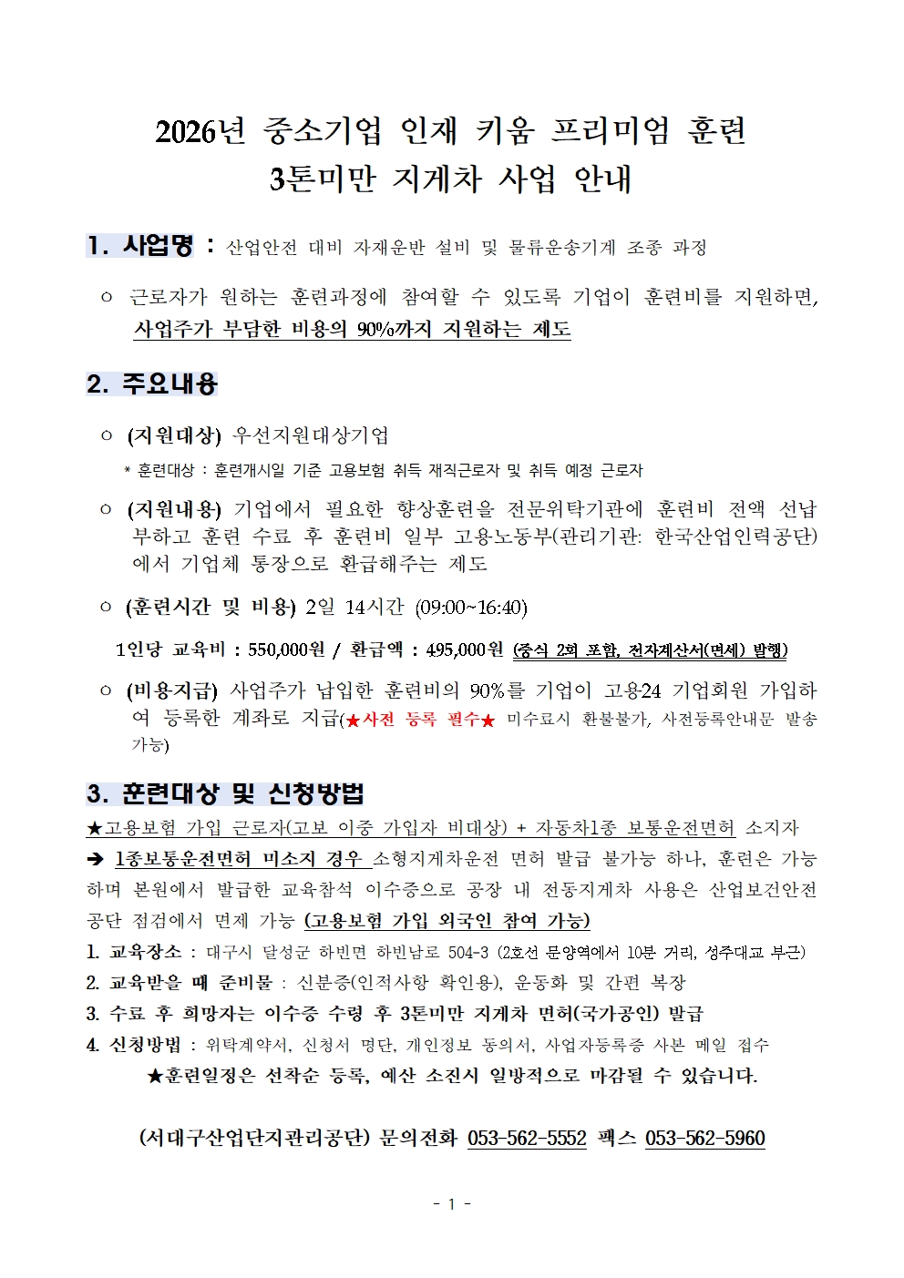 2. 3Åæ ¹Ì¸¸ Áö°ÔÂ÷ ±¹ºñÁö¿ø ÈÆ·Ã Âü¿© ¾È³»¹® 1ºÎ. ³¡.