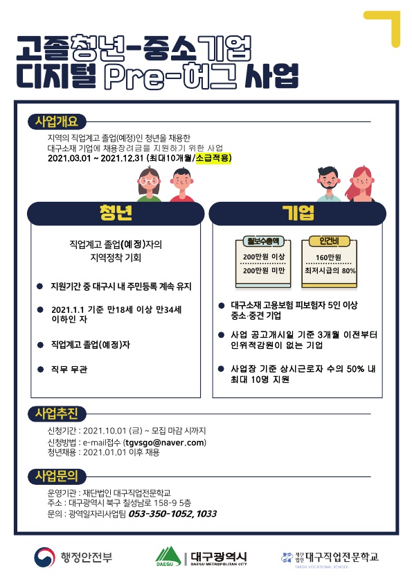| (Àç)´ë±¸Á÷¾÷Àü¹®Çб³ ±¤¿ªÀÏÀÚ¸®»ç¾÷ÆÀ (¢Ï 053)350-1052 ¶Ç´Â 053)350-1033)