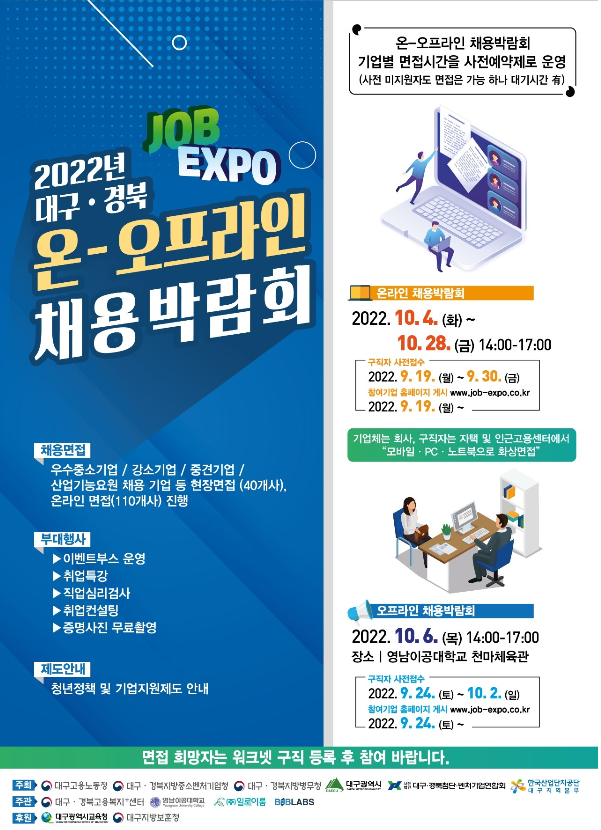 ¡Û ÁÖ ÃÖ : ´ë±¸Áö¹æ°í¿ë³ëµ¿Ã», ´ë±¸°æºÏÁö¹æÁß¼Òº¥Ã³±â¾÷û, ´ë±¸°æºÏÁö¹æº´¹«Ã», ´ë±¸°æºÏ÷´Üº¥Ã³±â¾÷¿¬ÇÕȸ, Çѱ¹»ê¾÷´ÜÁö°ø´Ü ´ë±¸Áö¿ªº»ºÎ¡Û ÁÖ °ü : ´ë±¸°í¿ëº¹Áö+¼¾ÅÍ, ´ë±¸¼ºÎ°í¿ëº¹Áö+¼¾ÅÍ, ´ë±¸±¤¿ª½Ã, ¿µ³²À̰ø´ëÇб³, (ÁÖ)ÀÏ·ÎÀÌ·ë, (ÁÖ)ºñ¾Øºñ·¦½º¡Û ÈÄ ¿ø : ´ë±¸±¤¿ª½Ã±³À°Ã», ´ë±¸Áö¹æº¸ÈÆÃ»¡Û Çà»ç±Ô¸ð : Âü¿©¾÷ü 150°³¼Ò * ÇöÀå(¿ÀÇÁ¶óÀÎ)Âü¿© 20°³¼Ò / ¿Â¶óÀÎÂü¿© 130°³¼Ò)¡Û ½Åû±â°£ : 2022. 8. 25.(¸ñ) ~ 9. 16.(±Ý)±îÁö¡Û ½Åû¹æ¹ý : ¾Æ·¡ Ç¥ ÀÛ¼º ÈÄ ¸ÞÀÏ(seodaegu77@daum.net) ¶Ç´Â ÆÑ½º(562-5960) ¹ß¼Û ¡æ '÷ºÎÆÄÀÏ' (¼½Ä1)Âü°¡½Åû¼ ¹× (¼½Ä2)±¸ÀνÅû¼ ÀÛ¼º