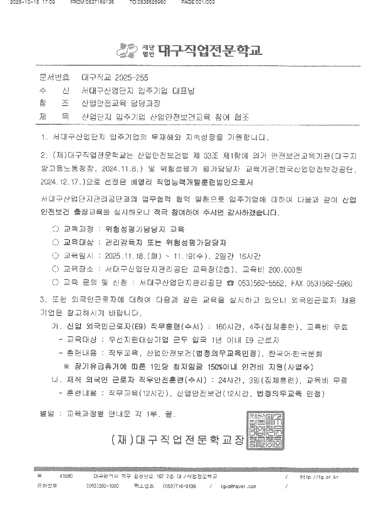 [»ê¾÷¾ÈÀüº¸°Ç±³À°(À§Ç輺 Æò°¡ ´ã´çÀÚ ±³À°) ¾È³»]