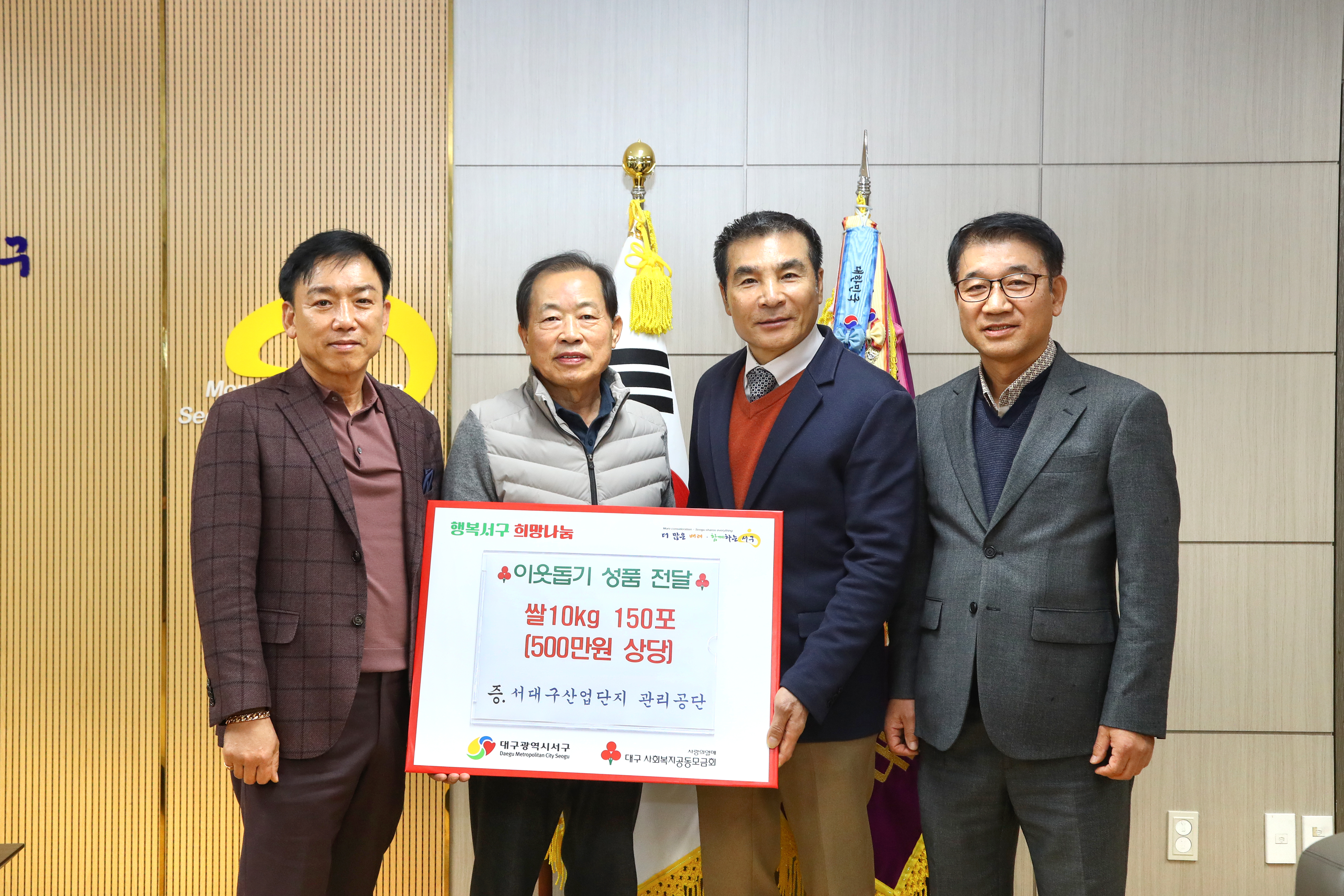 ¼´ë±¸»ê¾÷´ÜÁö°ü¸®°ø´Ü(ÀÌ»çÀå Á¶¿ë¿í)Àº ¿¬¸»À» ¸Â¾Æ ¾î·Á¿î ÀÌ¿ôÀ» À§ÇØ 10§¸ ¹é¹Ì 150Æ÷(500¸¸¿ø »ó´ç)¸¦ ´ë±¸ ¼±¸Ã»¿¡ ±âºÎÇß½À´Ï´Ù.